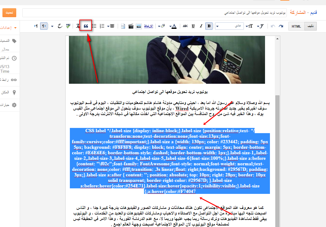 كيفية تغيير شكل صندوق الاقتباس في مدونات بلوجر بطريقة احترافية